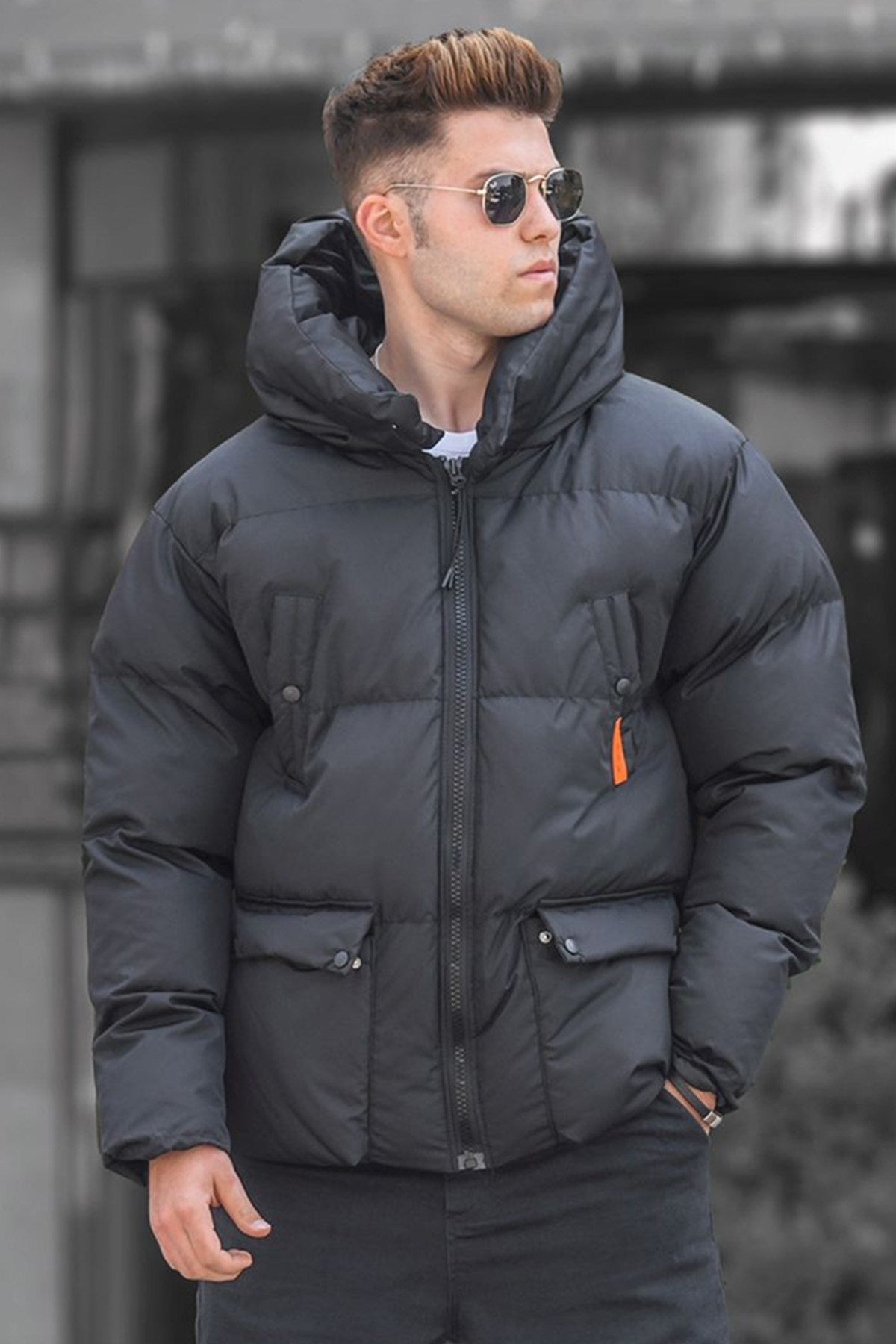 Black Inflatable Coat Pocket Detailed 5129